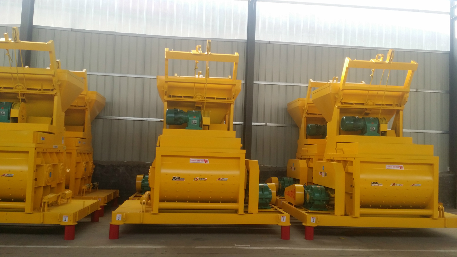 JS系列搅拌机搅拌系统是由电动机、皮带轮、减速器、开式齿轮、搅拌筒搅拌装置、供水装置组成。